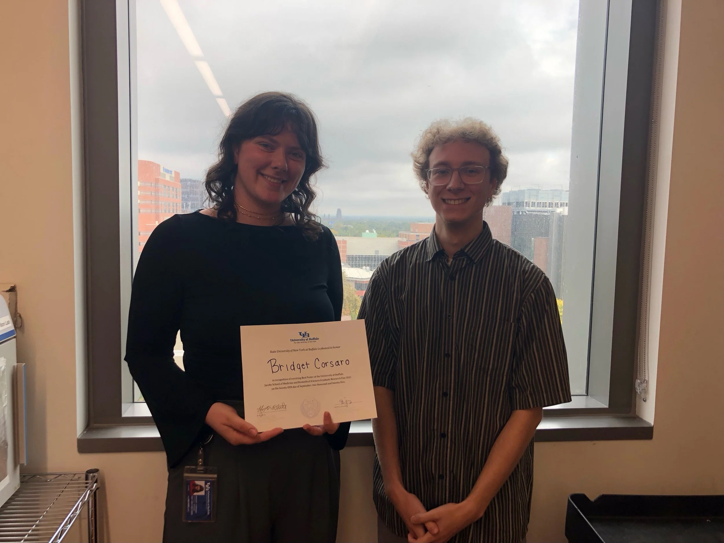 Hannah Schneiderman won the MiTeGen Poster Prize for her outstanding poster presentation at the Western New York Structural Biology Collaborative Symposium. Way to go Hannah!!